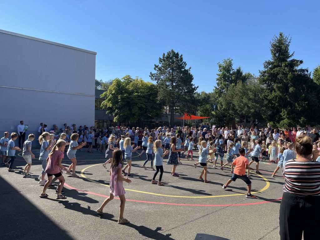Um kurz nach halb zehn konnten wir vor der Schule viele stolze Kinder sehen, die von ihren genauso stolzen Eltern im Empfang genommen wurden. Und während hier die letzten Erinnerungsfotos gemacht wurden, sammelten sich auf dem Schulhof bereits die nächsten Gäste. Denn nach den Klassen 1a und 1b folgte nun die Einschulungsfeier der Klassen 1c und 1d. So hatten alle Kinder und Erwachsenen genug Platz und jeder konnten diesen besonderen Tag genießen.